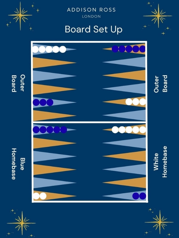 Backgammon may be ancient, but learning to play is refreshingly simple. Here’s a quick guide to setting up your Addison Ross board and enjoying your first game.