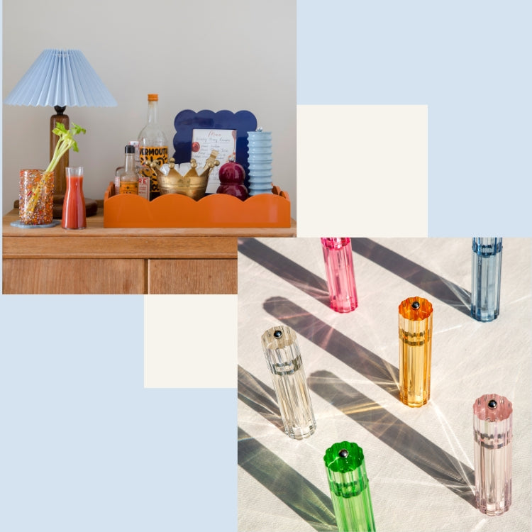 - Statement trays or accessories in high-impact hues