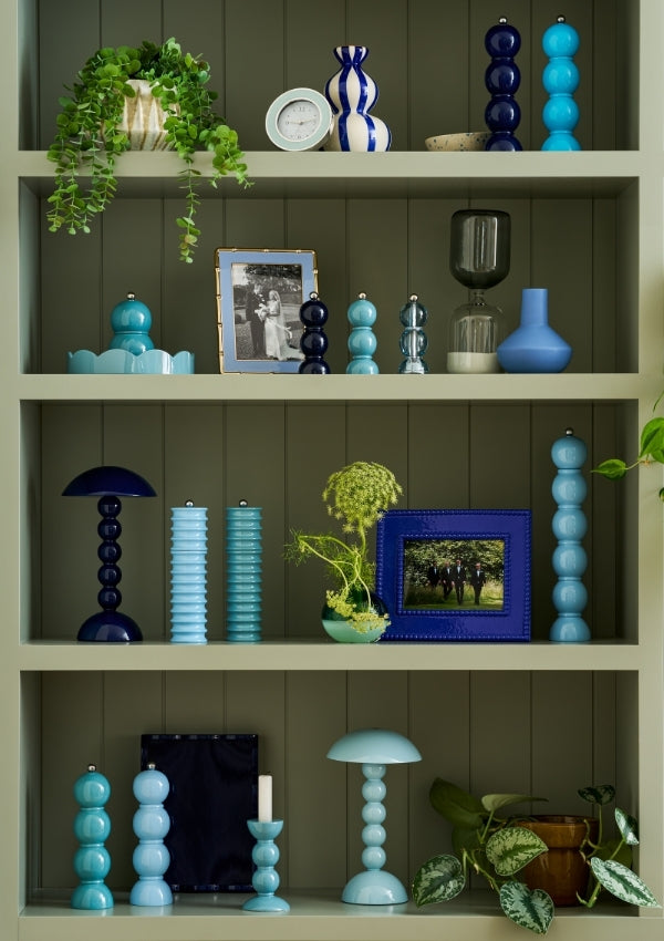 Shade layering works particularly well in kitchens, where balance is key. Lighter blues can be used for decorative accents and smaller accessories, while deeper, inkier tones work beautifully for more grounding pieces such as trays or mills. When combined with natural materials like wood, stone or marble, these varying shades of blue feel fresh rather than formal, bringing a quiet sense of order to the space.