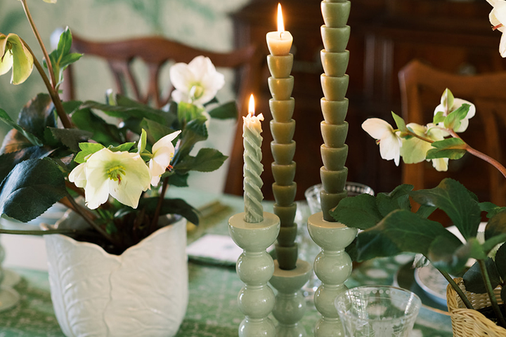 Regular price $60.00 USDRegular priceUnit price perSale price $60.00 USDTall Sage Bobbin Candlestick - 24cm