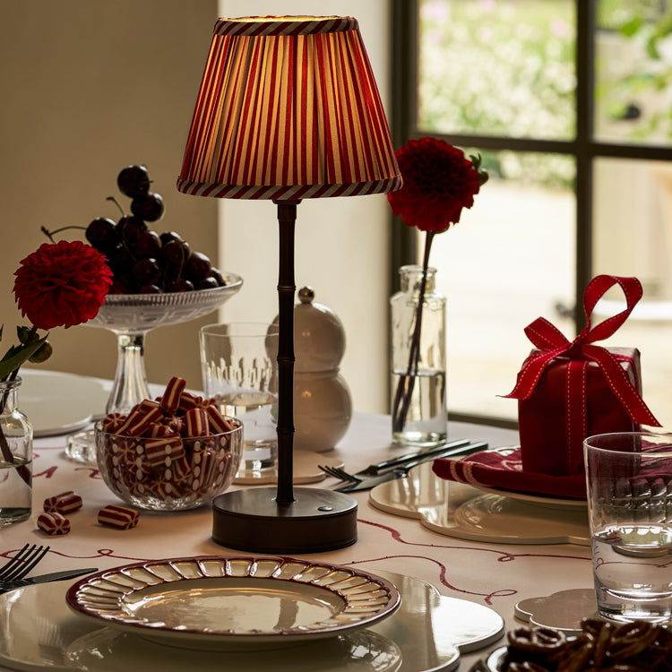 Elevate your space with the elegant rechargeable Bamboo LED Lamp Base in a refined bronze finish. Crafted for style and convenience, the rechargeable and cordless lamp delivers up to 10 hours light on a single charge. With three adjustable brightness levels, this lamp lets you set the perfect ambience - choose a soft, warm glow for a relaxed mood, or a bright, focused light for tasks and reading.