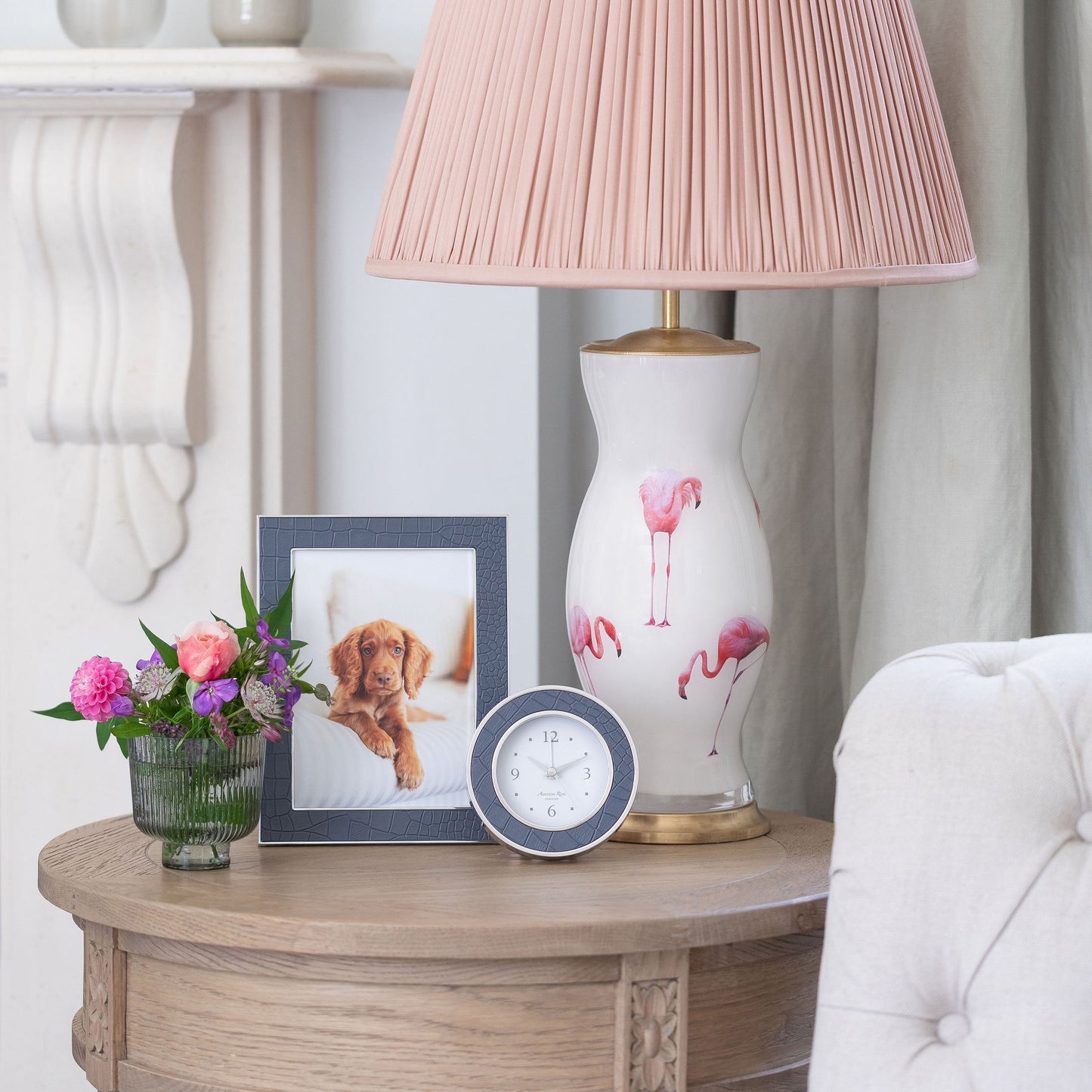 Our faux blue croc alarm clock beautifully compliments our enamel frames, complete with an alarm function, this clock is ideal for a bedside table or desk.
