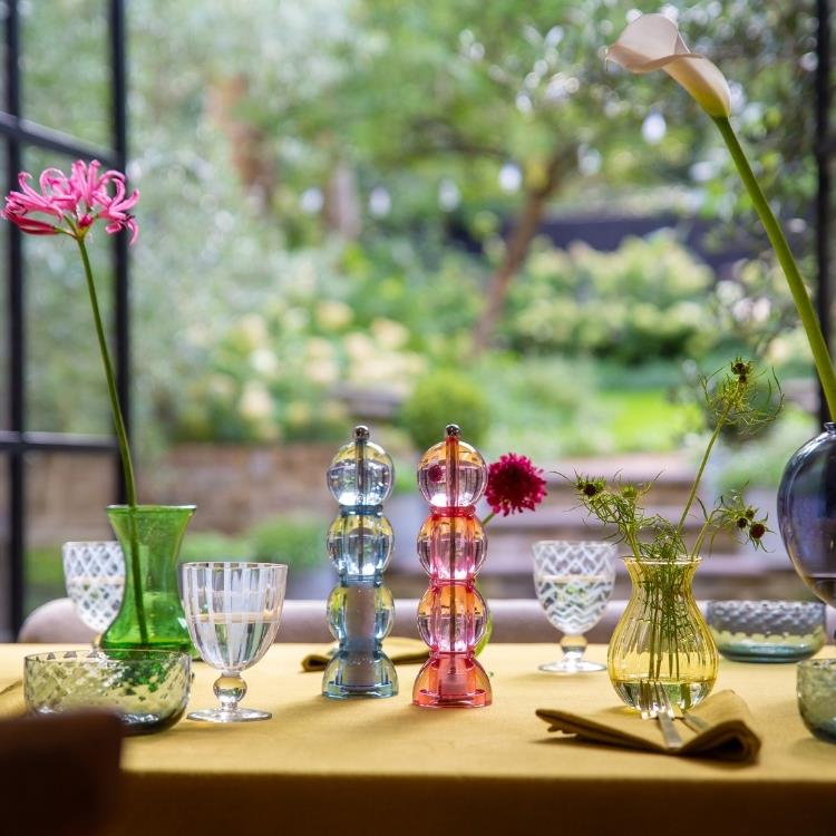 The Blue Icy Bobbin Salt and Pepper Mill combines striking design with practicality. Crafted from durable acrylic with a transparent design that allows you to see the salt or pepper inside the grinder. Our signature Bobbin shape adds a touch of elegance to your table. Standing 24cm tall, this mill is both a functional kitchen tool and a stylish tabletop centrepiece, perfect for everyday use and special occasions.