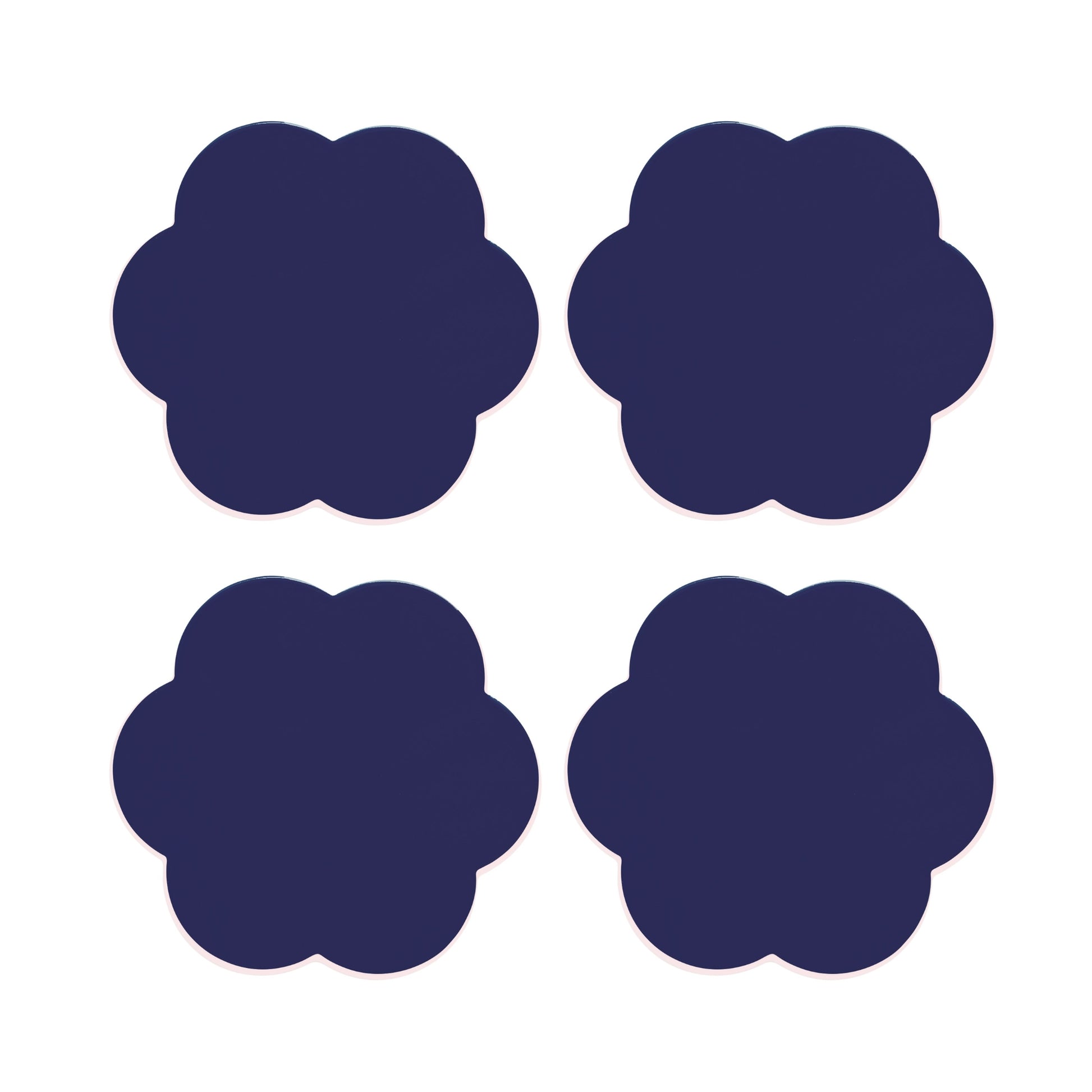 Our Navy scallop coasters are gift boxed as a set of 4, finished with 20 coats of high gloss lacquer, hand polished between each coat. The base is finished with cream velvet embossed with our logo.