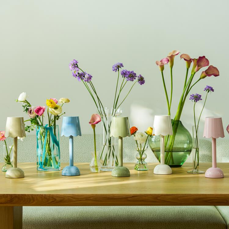 This one-of-a-kind Sage rechargeable lamp features a Scalloped-Shaped design. It offers up to approximately 12 hours of battery life and has three adjustable light levels.